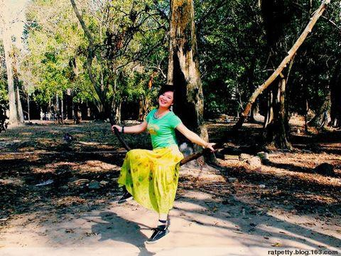 王宫院落中的参天大树遮天蔽日,地上落叶堆积,从树叶缝里漏下来的阳光把这一路弄得很是斑驳。几个小孩儿正在荡秋千,那天然的藤蔓植物倒真是完美的玩具。村妇忍不住跑了过去,孩子们帮忙稳住秋千,然后用力推开------此后,村妇同志又分别在崩密列等多处大玩秋千瑜伽。