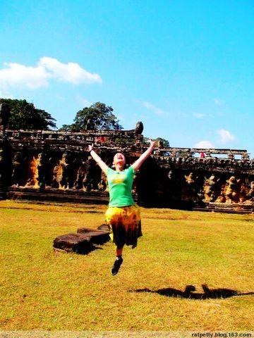 在此碰到一个中国团,导游正在给大家讲述周达观的故事。他说当年元朝皇帝铁木儿派遣周达观出国考察访问真腊,周大人回国后详尽描述真腊之富裕,搞得皇帝老儿心中痒痒恨不能立马占有人家。但是周大人说了,真腊有大象,不仅巨大,而且皮厚刀枪不入,元军的马队是打不过人家的。