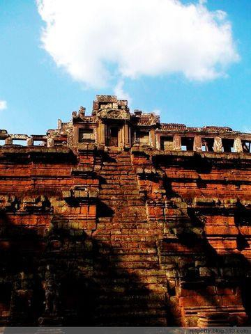 巴戎寺的隔壁便是巴芳寺(Baphuon),它建于1050-1066年间,是历史上第三座吴哥城的中心,可悲的是它几乎已被破坏殆尽,加之巴戎寺对我们冲击太大,心力憔悴之下实难有所感悟。