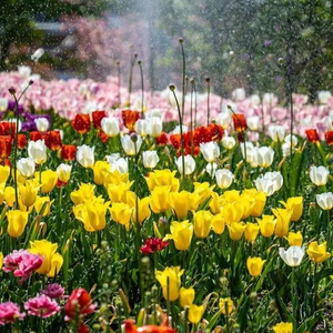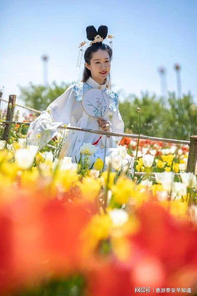 游艇、房车、摩天轮,与浪漫的荷兰风车、等相结合,呈现出一片极具浪漫色彩的春游图景。巧笑倩兮,美目盼兮,穿着汉服的少女,成为花海中的精灵。