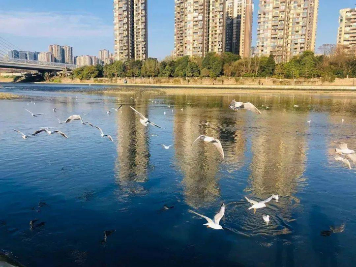 2019年初,鹿溪河生态区惊现众多红嘴鸥。