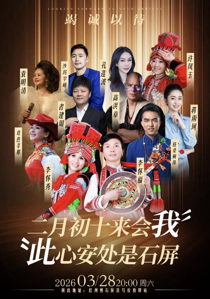3月28日,云南将迎来两场精彩演出,潮流天后超级演唱会曲靖站将在曲靖市文化体育公园体育场开唱,张韶涵、张靓颖、许茹芸、袁娅维四大实力女声齐聚,用经典金曲点燃滇东之夜;红河州石屏县非遗市集群星演唱会将在当地马拉松驿站非遗市集上演,李怀秀、李怀福、茸芭莘那等非遗音乐人登台献艺,现场还搭配千人篝火晚会,尽显云南民族音乐与非遗的独特魅力。