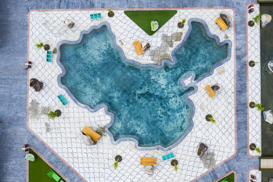 蓝色天国温泉区每一个泡池边的巨大石柱上都雕刻着中国的传统文化,从四书五经到武侠江湖,在泡温泉的过程中,又使自己进行了一次文化的洗礼。从空中俯瞰温泉区,还是一个巨大的中国地图哦,不得不说这里在温泉的建设上也是很有创新。
