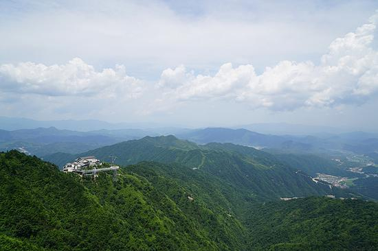 山间到处都是葛仙翁的仙迹,试剑石、仙人足迹、飞升台……一路上青松相伴,满眼的绿色清凉世界。间或有潺潺细水从岩缝中流出,有经验的本地人早早就准备好矿泉水瓶灌满解渴。站在飞升台前极目远眺,这层峦叠嶂的青山,这其实也是武夷山脉的一部分。