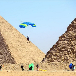 新华社开罗11月1日电(记者吴丹妮 闫婧)第四届金字塔国际跳伞节1日在埃及首都开罗附近的吉萨金字塔景区开幕,来自埃及、巴西、加拿大等30个国家和地区的200余名专业跳伞运动员参加。