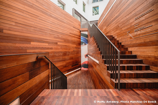 位于安特卫普市中心的Mode Natie由安特卫普皇家艺术学院时装专业、法兰德斯时尚协会和MoMu博物馆组成。这座拥有圆拱形屋顶的白色典雅建筑诞生于19世纪,曾作为成衣店、交易所并几经转手。2000年被建筑师Van Hee重新设计,以三角形天井为轴引入自然采光,墙壁和楼梯连接起的红砖色铁木,与地面合成整体视觉效果,自下而上的垂直通道极具现代感。