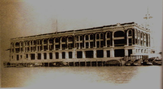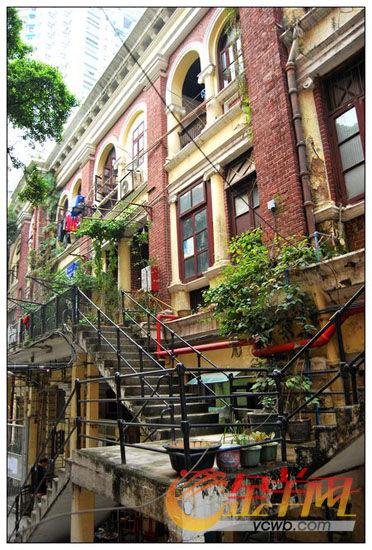 墙角被风化的麻石奠基石用英文写着“November28,1908”。从老照片上可知,100年前,波楼北面就是珠江岸边的滩涂。它当时是珠江南岸最壮观的建筑物。底层做验货厂,楼上为俱乐部,其余为宿舍格局,当初供单身外籍关员居住。