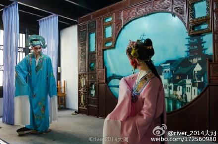 舞台上则是两个昆曲造型的人物,潇洒俊美。