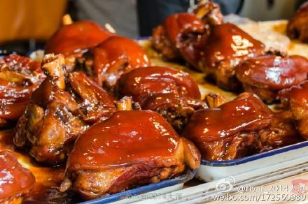 蹄髈是江南一带喜欢的美食,肥而不腻,色泽红润,以周庄的万三蹄最为有名,别的几个古镇上也都有类似的美食。份量可不小,一个人很难吃完哦。