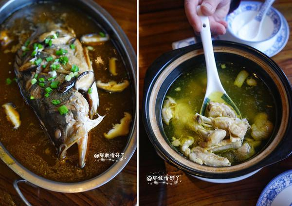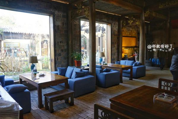 吃晚饭的时间到了,在宽敞的大餐厅,一边是纯粹中式的老式餐桌椅,一边是纯蓝色布艺大沙发,一中一西,现代与历史的碰撞。我们坐在蓝色的大沙发上,享用着当地大爷做的地道徽菜,这还是来到黄山后第一顿正经的徽菜大餐呢。