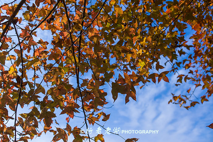 山风掠过,将天上的云彩吹起一丝丝白云,芦草都枯黄了,配合着蓝天也是很美丽的。有人说最美的季节是十一月中下旬的时节,来看红叶,也有人说一年四季都很美,“春赏山花,夏弄清风,秋观枫叶,冬踏冰雪”。