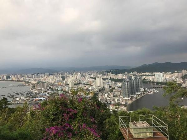当天傍晚我们去了大东海的鹿回头公园。酒店打车12。鹿回头公园三面环海,可以俯瞰整个三亚,风景很好!可惜当天多云,没有看成日落。