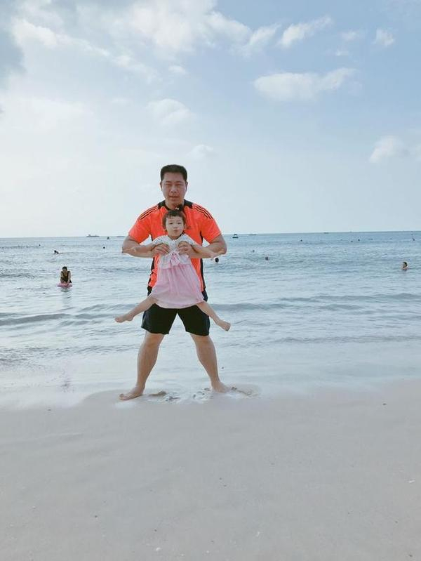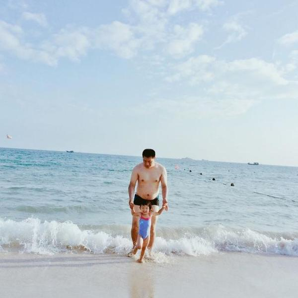 虽然我是个旱鸭子,但也不能阻挡我对大海的向往。哈哈,换好泳衣,我们下海啦!豆爸在大海里畅游,我只能抱着泳圈瞎扑腾