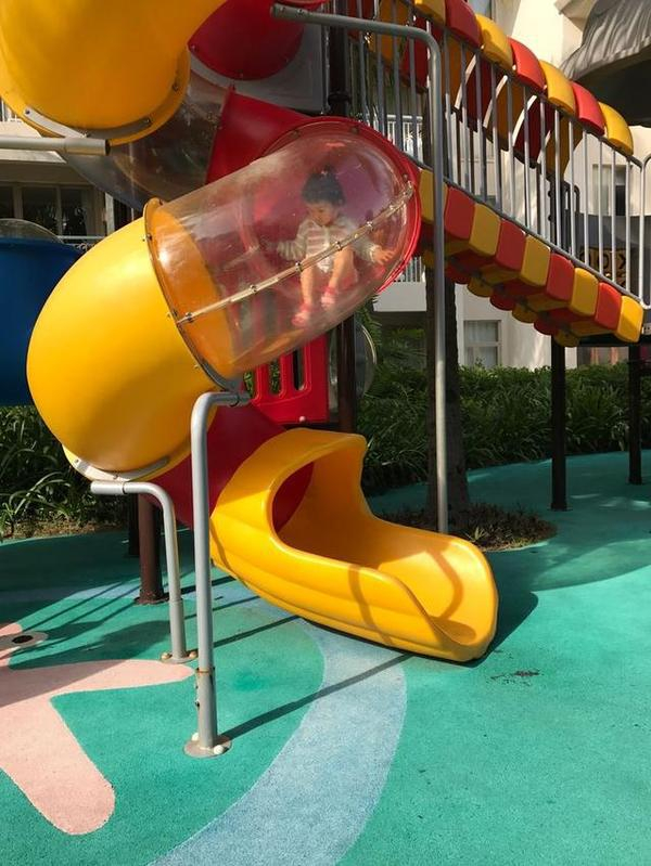 酒店大堂旁边就是儿童户外娱乐设施。