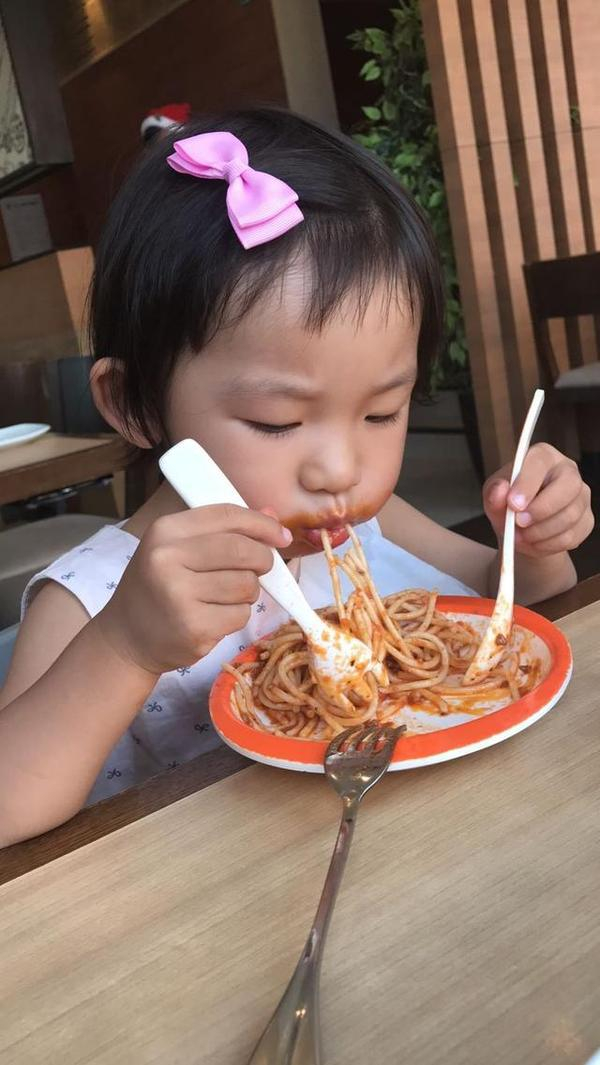在百花谷商业街吃了一次必胜客。因为有小豆豆最爱吃的意大利面。