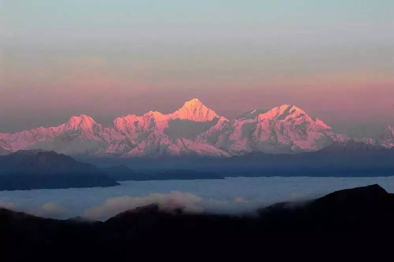 站在山顶远眺,脚下是壮阔的云海翻涌,天边是圣洁的贡嘎神山,任何语言都不足以形容。