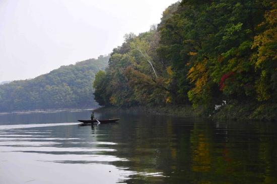 红石国家森林公园占地面积很辽阔,大约2.8万公顷的森林、2千多公顷的水域,赏枫去处除了森林游吧,还有许多地方,这小洞天又是一处,需要在白山湖上乘船上岛。