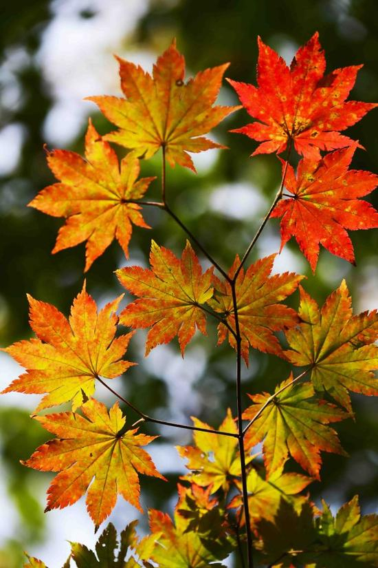 每一片枫树在天空描绘的图案都有不同,常见的是五角枫,听说森林游吧的红叶品种不少,这棵是九角枫,如果你有时间,在林中几万棵枫树中找找传说中的十一角枫甚至十三角枫也很幸运的事情,十一角枫很有含义,代表诚实、忠诚、勇气、信心、责任、忍耐、诺言、理智、仁义、智慧、成功。如果我找到,一定在树下找些红叶珍藏,是对人们共识的美德一种景仰和珍惜。