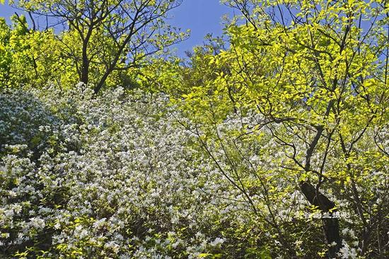 五月是鲜花盛开的时节,大黑山漫山遍野的山花竞相开放,紫色的杜鹃,妖冶绽放;山杏花是现在的主力,一树树雪白雪白的花夹杂着一颗颗绿色的小山杏,有的还有些微微发红,采一颗放到嘴里,一股微苦酸酸的清新,让人醒脑提神。