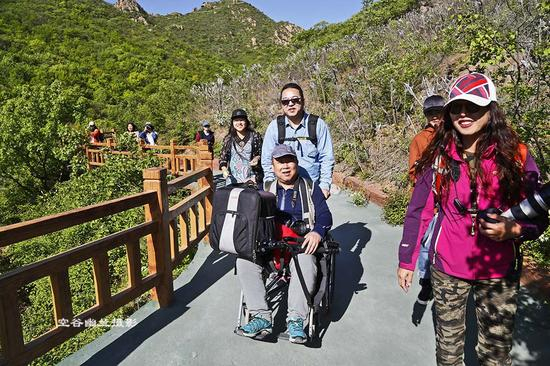 辽宁朝阳北票大黑山 推着轮椅带父母登山