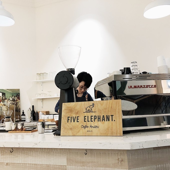 在Five elephant听到两位咖啡师在筛查讨论豆子的味道问题,这是 德国 咖啡连锁店在国内的唯一一家分店。
