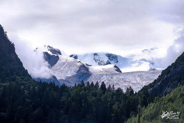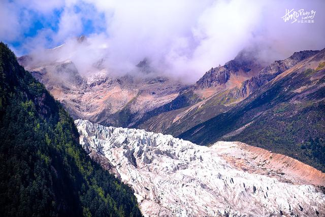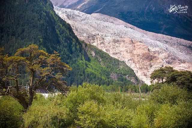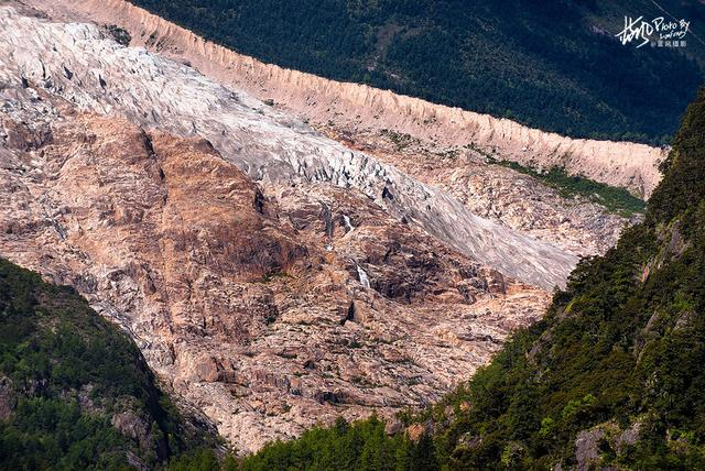 沿着小路可以慢慢的相距冰川仅仅100米左右远的地方走到高于这个冰川的地方,可以把依嘎冰川尽收眼底。