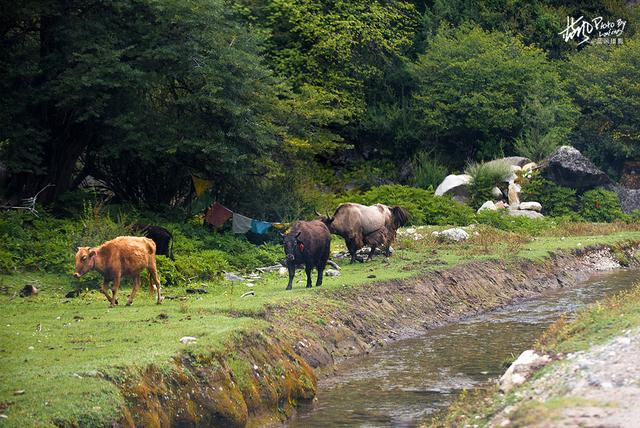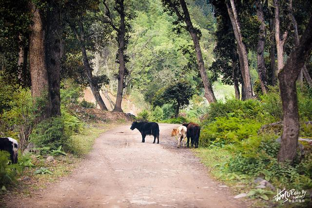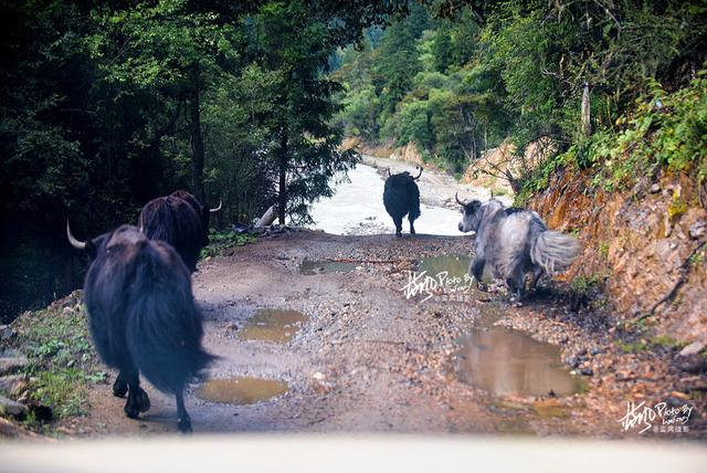 嘉黎县境内海拨最高的地方是麦地卡湿地,这里的海拨高度为5000米左右,而今天我们所要去的尼屋乡也是嘉黎县境内海拨最低的地方,下尼屋的海拨高度是3000米出头,而今天去的上尼屋的海拨高度要比下尼屋高了几百米。虽然海拨也有3000多米的高度,但由于这里林木茂盛,空气含氧量很高,所以到了这里不会有什么明显的高原反应。假如从高海拨的地方突然来到这里,会有补氧的感受。这条崎岖的山路上牛马成群,悠闲自在,仿佛它们才是这里的主人,只有汽车开到它们跟前的时候,才会懒洋洋的躲开。