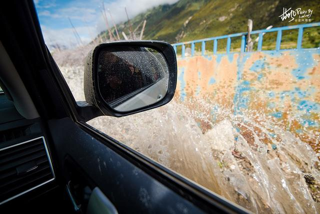为了透过车窗拍照,右边的车窗就一直开着,从无数个水坑中开过溅起的水花,让我右边的衣服袖子上沾满了泥浆。