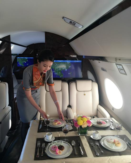 湾流G650ER飞机无疑是目前为止世界上速度最快、航程最远的顶级豪华公务机,一经展出就吸引了大批观众登机参观。此架湾流G650ER最大航程达13890公里,最大巡航速度为0.925马赫,最大飞行高度可达15545米,可以以0.85马赫的速度连续飞行约15小时,从北京直飞纽约、伦敦等世界各地。举例,从亚洲赌城澳门前往世界著名博彩胜地拉斯维加斯,如果乘坐大航班,将花费您至少21小时35分钟,其中中转停留时间7小时。而如果您选择南山公务机此架湾流G650ER飞机只需要花费14小时25分钟,节约了1/3的旅途时间,避免了中转的劳顿,此架飞机可谓是真正的“时间机器”,而湾流G650ER这种时效性也更加体现了公务机作为交通工具的首要功能。