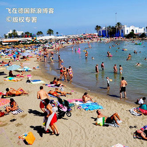 西班牙的海滩文化是相对比较开放的,上半身不受束缚享受日光浴的大有人在。数公里一望无垠的平坦感觉就是马贝拉海滩的最吸引人的地方。由于地处地中海至大西洋的入海口,太阳海岸的海水并不安静,时而泛起很高的浪潮。而这片海岸由于有了港口的阻隔,风浪明显要小很多,难怪很有人气。不喜欢热闹的可以找人少的地方铺张毯子自个儿晒晒日光浴。