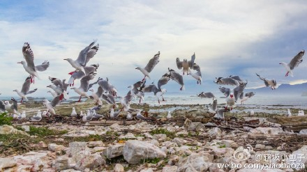 地图显示下面的海滩上还有一个BirdCity(鸟之城),有了上午看海豹的经历,我知道这里肯定也不容错过——听这名字应该就很壮观。从悬崖顶端沿着阶梯下到海边,海岸边有一块向海中间延伸出的微型半岛。整个半岛上,密密麻麻地全都是海鸥!以前只在《探索》频道里看过这种地方,今天居然亲眼见到了,着实震撼。刚才喂海鸥的时候就已经觉得够多的了,没想到那只是九牛一毛,新西兰真是一个神奇的地方!我兀自在那感叹了半天,殊不知这里便是南岛上最大的红嘴海鸥栖息地。
