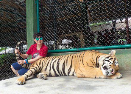 我搭档第一次与老虎亲密接触!萌萌哒,温度不低所以这只大虎困了。。。