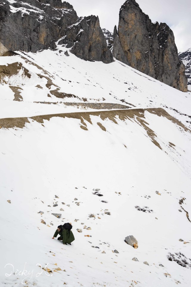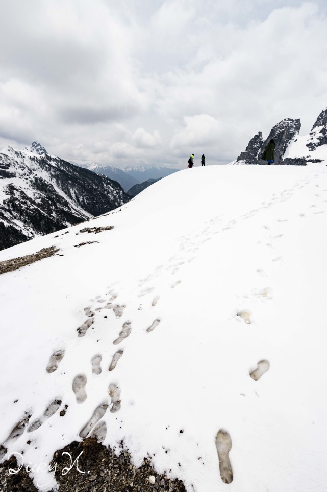 从山脚下的巴拉村一直驱车,随着海拔高度不断爬升,我慢慢接近山顶。车窗外的景色也进入明显高山气候——一片白茫茫。天上和地下都被白色所覆盖。当听到司机说“车子只能到这儿了,上面只能靠步行”这句话的时候,我才感受到真实的香巴拉。