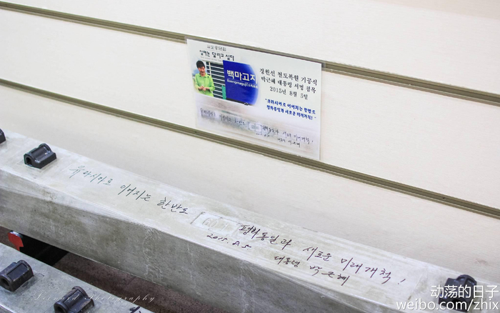 其他展馆内,还有展示各种火车的零部件,来自世界各地的火车票等等。在奠基馆里,有展示1978年时幼年朴大姐参加旧首尔火车站剪彩的黑白照片,时光荏苒的27年以后,朴大姐作为总统在2015年韩国始发的亚欧专列奠基仪式上的祈福,祝韩半岛统一,共启美好未来。