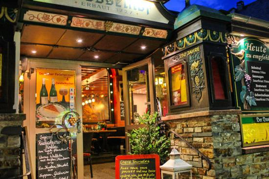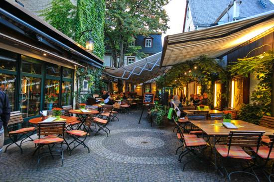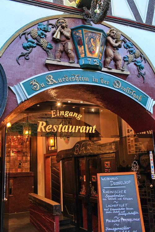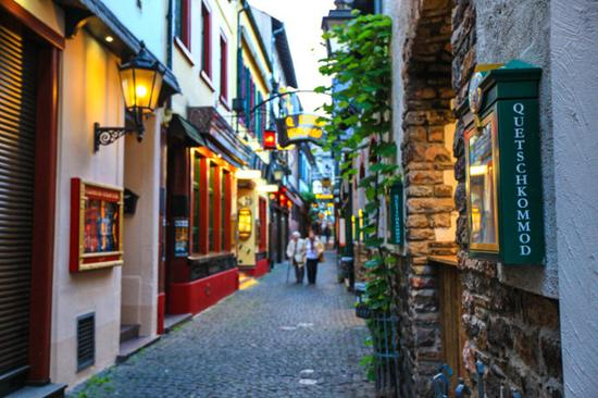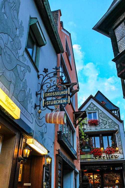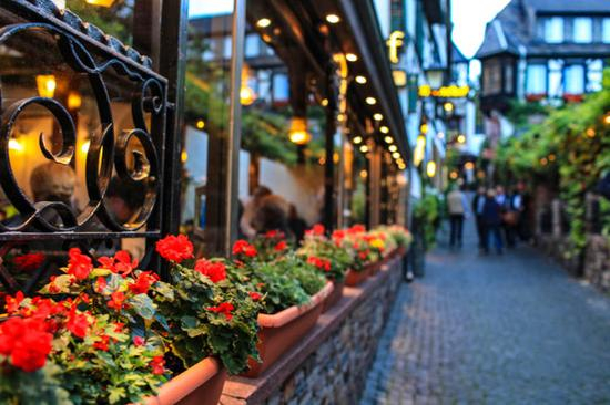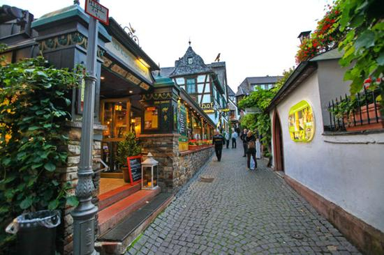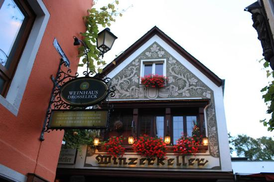 吕德斯海姆有条著名的小巷子,名叫drosselgasse,它靠近码头上船的地方,非常狭窄,两边布满了各种特色小店,集中了众多的酒吧和餐厅。