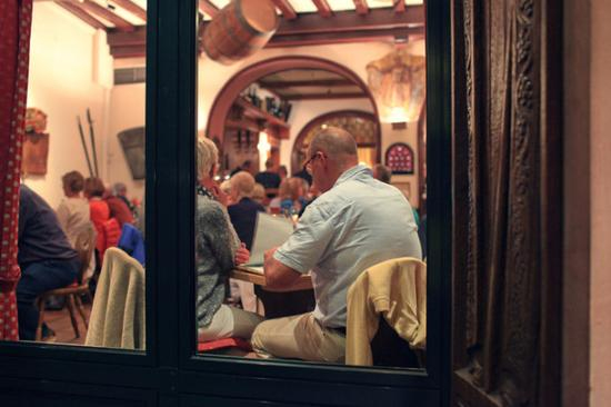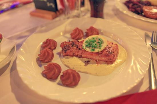 我们挑选了小镇里面一家看着很气派的餐厅,虽然叫不出它的名字。