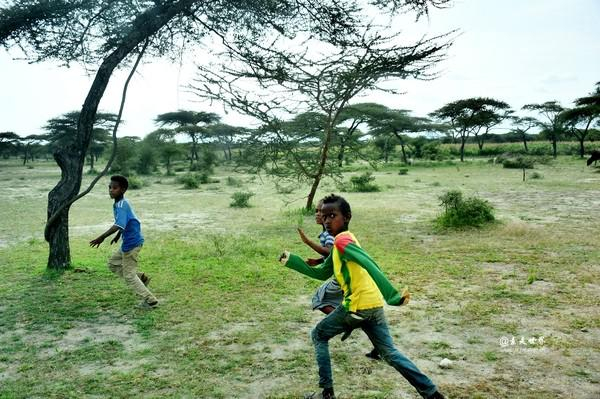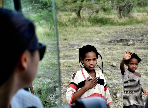 从车子进入阿比加塔-沙拉国家公园一路上夹道欢迎的除了野生动物还有当地孩童,在车子风驰电掣间,一路上远远看见的孩童向着汽车行驶的方向奔跑过来,伸手向我们要钱,不顾危险。