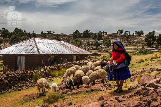 的的喀喀湖的另一个神奇岛屿塔丘勒(IslaTaquile)位于湖中,风景如画,可以俯瞰整个湖区,对面的玻利维亚也清晰可见。岛上的原住民也属于印加Quechuan(克丘亚人),他们依旧保持着数百年不变的传统,服饰奇特。在这接近4000米海拔的岛上没有任何交通工具,完全靠人力负重,看着从身旁走过的那些饱经风霜、黝黑的面孔,感叹高原生活不易。最不可思议的是这里的男人都擅长编织,灵巧如女人般。