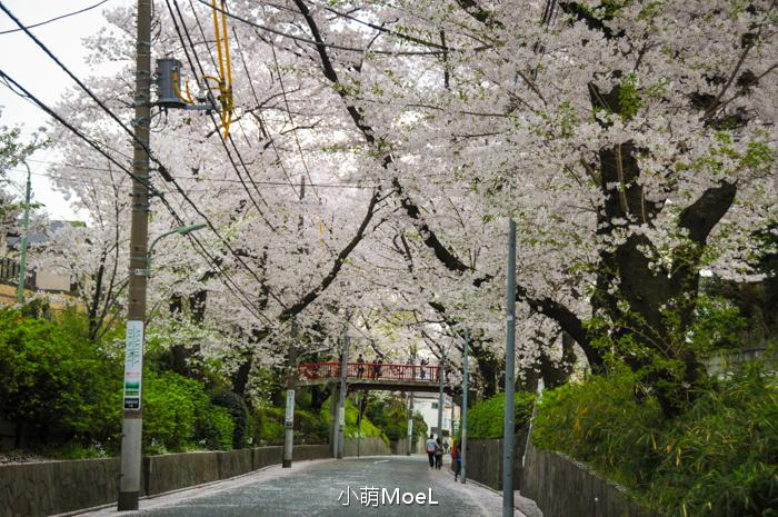 沿着多摩川散步至此。山坡小路虽不长,但樱树沿街而生,尤其到了落樱的时候,花瓣如雨纷飞。车辆偶尔驶过,卷起一路的花瓣在路面跳跃,即使只是步行在路上,也有花瓣绕于脚边,好美~