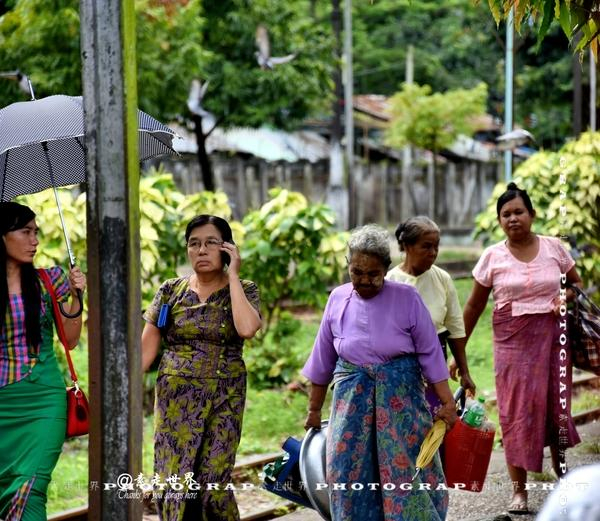 铁轨旁边的小市场也是停不下来的忙碌,就随便站一角落观察着来往的人拍些扫街片也挺有意思。看到这里相信没去过缅甸的都有一个问题要问,他们脸上涂抹的是什么?