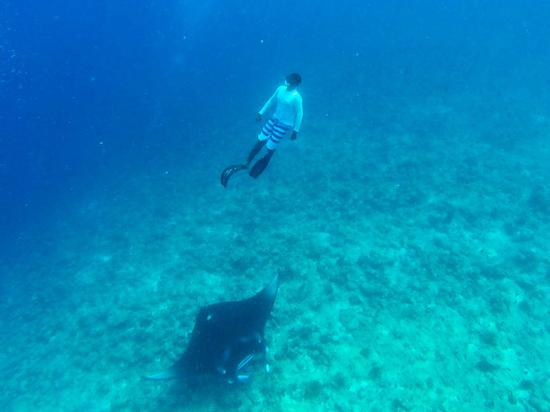 MANTA最大可长到4米宽,在整个潜水过程中,他们会在深潜者身边来回游动。