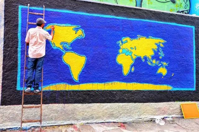 写上名字的那一刻,心情好的不得了,而这次把涂鸦画在里约著名景点的必经之路,更是意外和欢乐。旁边这位当地艺术家在这里绘画世界地图