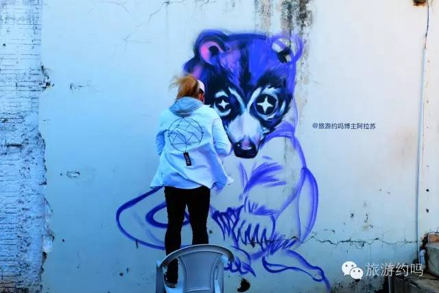 后面ANO童鞋又画了我的代表一条小蛇,还写上我的微博的名字,我开心的不得了,旁边当地艺术家还拿来阶梯,我也参与的喷上了一些色彩。