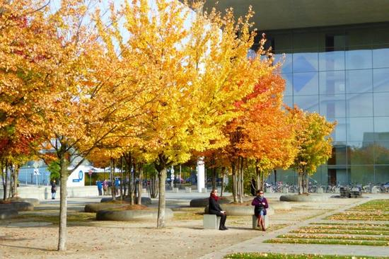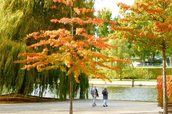 终于在总统府和联邦议会前的大广场上发现了一片好看的枫树,经过雨水寒风和低温的洗礼,此时正是一片红红黄黄的,颇为养眼。