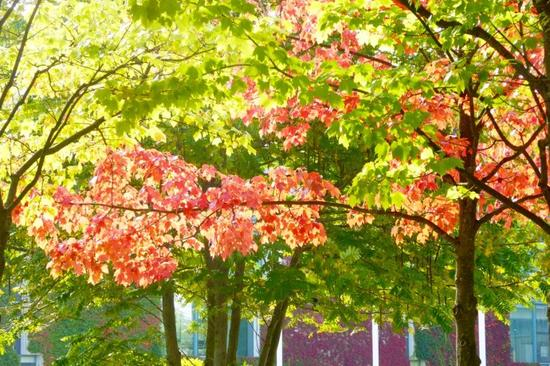 这一排刚刚长成的红枫很漂亮,不过是在总统府里面,好在可以隔着铁栅栏望上一望。