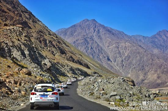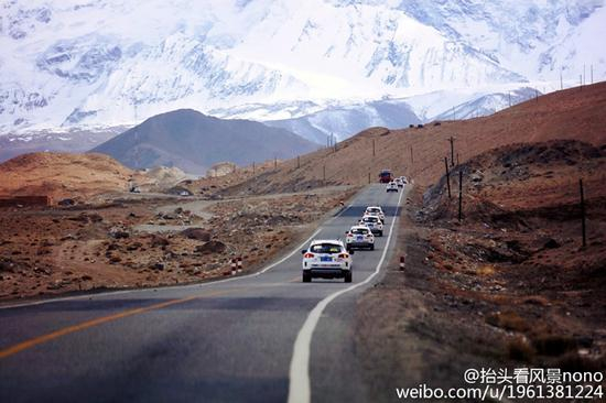 车队向着雪山行进