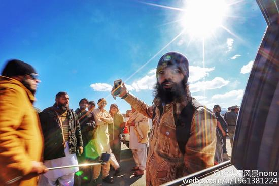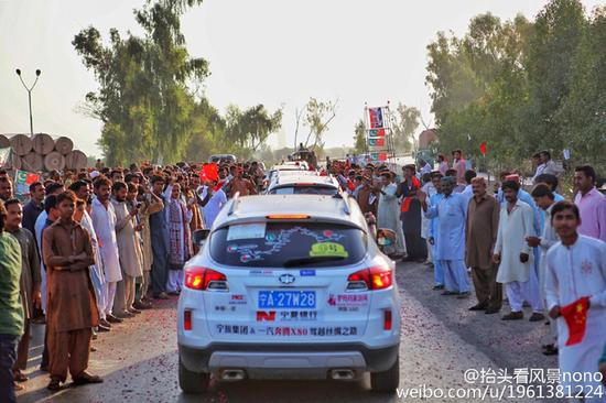 沿路热情友好的巴基斯坦人与车内远道而来的中国朋友握手,合影。