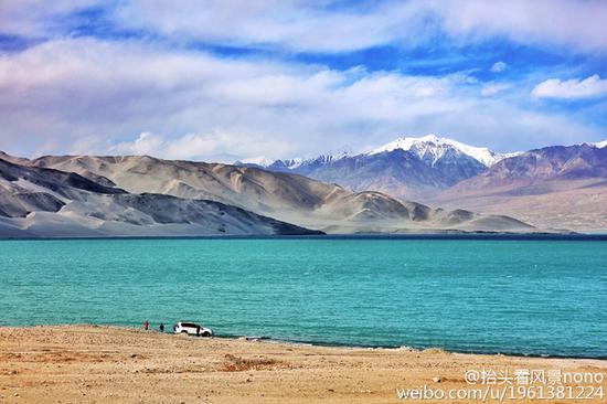 雪山,蓝天,碧水,看到这样的景色人也忘了旅途的疲劳。