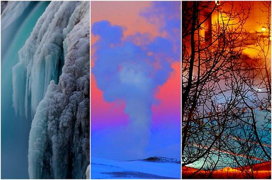 这里,冰雪冷艳,大地冒烟,温泉滚烫,天空绚丽。。。。。。