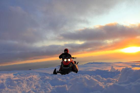 在米达尔斯冰原为学习驾驶雪地摩托。